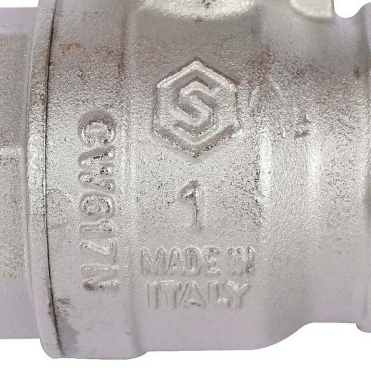 Шаровой кран изготовлен из латуни марки CW617N. Уплотнение штока выполнено 2 кольцами: материал FKP (Фторопласт) и NBR (Нитрил-каучук).