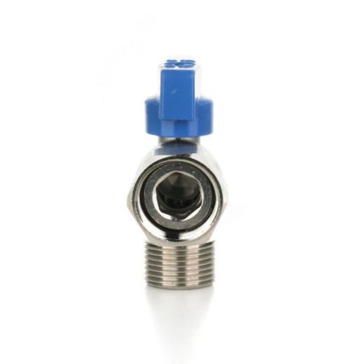 Кран шаровой угловой НВ 1/2" с накидной гайкой, флажок синий ELSEN