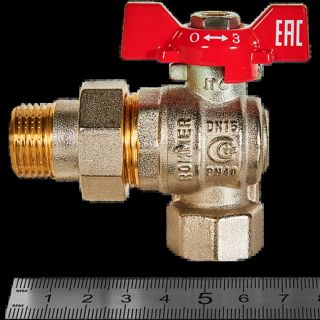 Кран шаровой угловой с американкой ВН/НР 1/2", бабочка ROMMER