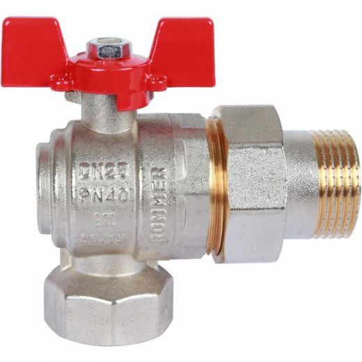 Кран шаровой угловой с американкой ВН/НР 1", ручка бабочка ROMMER