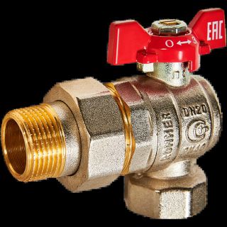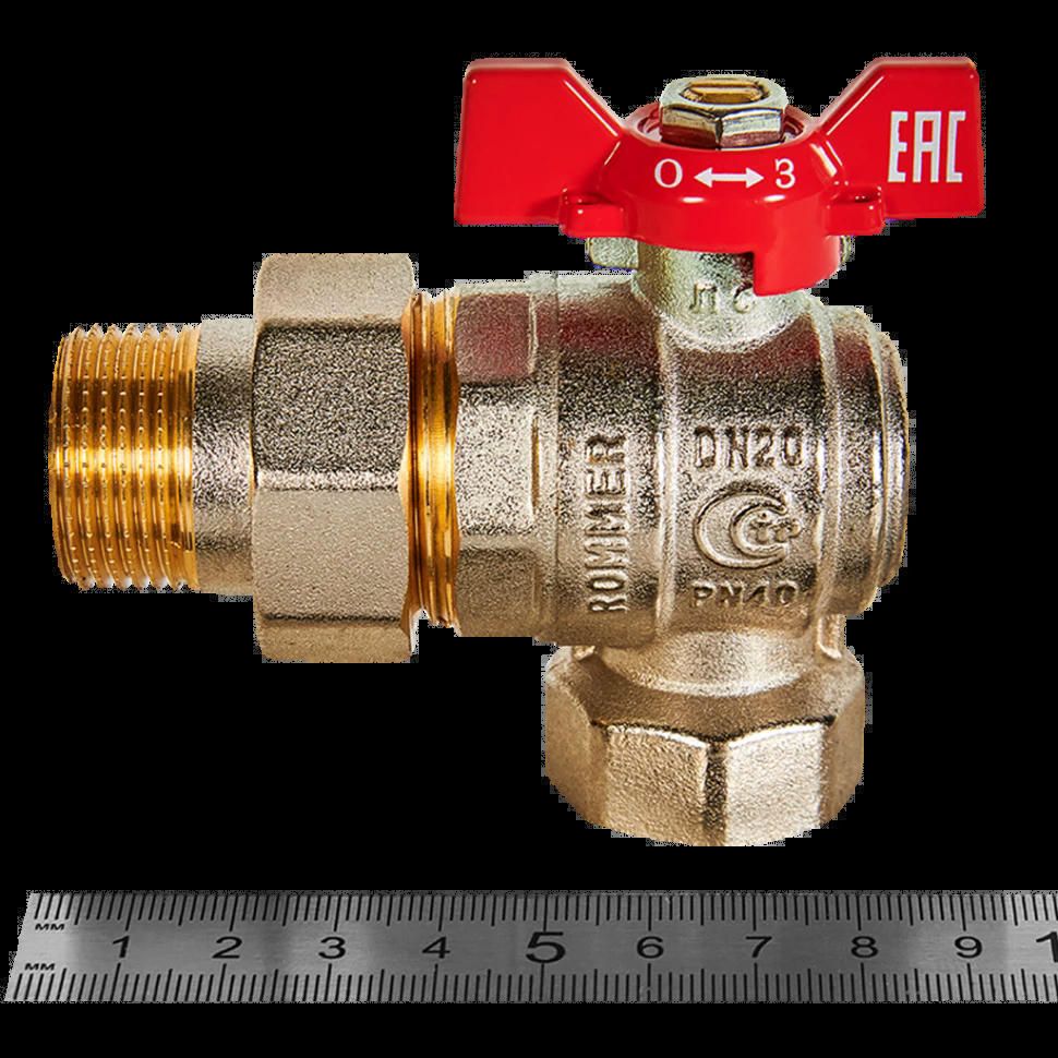 Кран шаровой угловой с американкой ВН/НР 3/4", бабочка ROMMER