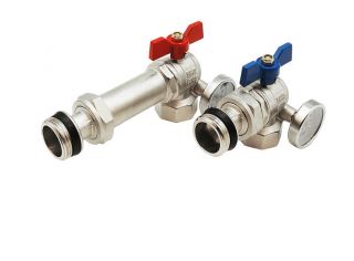 Кран шаровой угловой с полусгоном и термометром для коллекторных групп 1" TIM