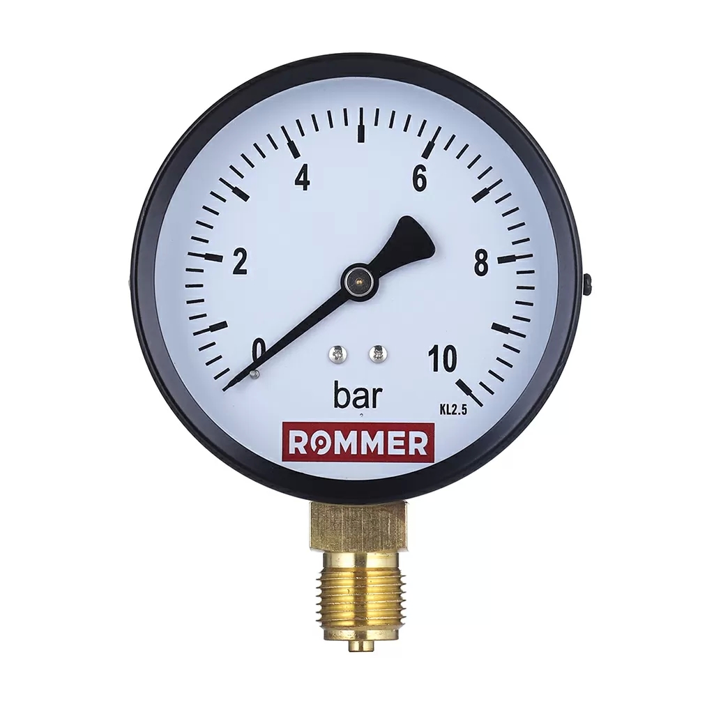 Манометр радиальный Rommer - 1/2* (D-80 мм, шкала 0-10 бар)
