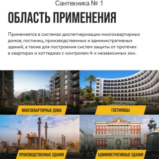 Устройство управления для систем контроля протечек воды на 4 независимые зоны. Управление и контроль системы осуществляется через приложение на смартфоне и посредством протокола MODBUS через интерфейс RS-485 . Модуль совместим с проводными, беспроводными и ленточными датчиками контроля протечки воды и оснащен световым и звуковым оповещением при аварии.
