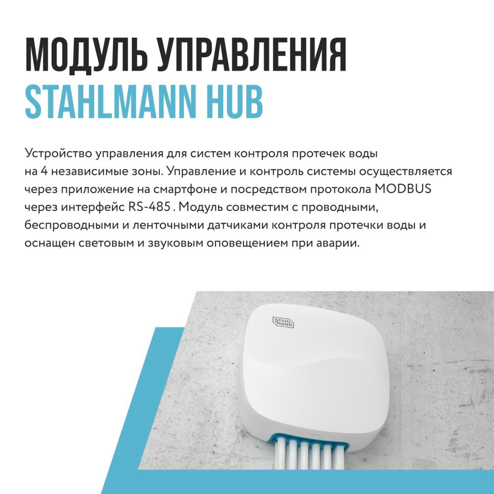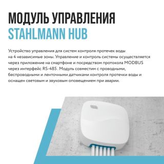 Устройство управления для систем контроля протечек воды на 4 независимые зоны. Управление и контроль системы осуществляется через приложение на смартфоне и посредством протокола MODBUS через интерфейс RS-485 . Модуль совместим с проводными, беспроводными и ленточными датчиками контроля протечки воды и оснащен световым и звуковым оповещением при аварии.