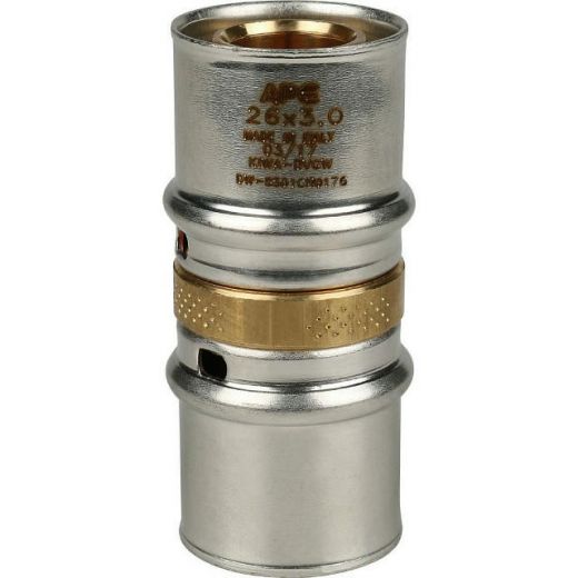 Муфта соединительная равнопроходная 26х26 для металлопластиковых труб, прессовой STOUT