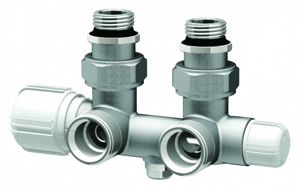 Оцените товар «Н-образный термостатический узел с запорными клапанами 3/4" EU х НР 1/2", угловой FAR»