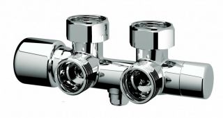 Н-образный термостатический узел с запорными клапанами 3/4"EU х 3/4" ВР, угловой FAR