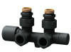 Н-образный термостатический узел с запорными клапанами М24х19 - 1/2" НР, черный, угловой FAR