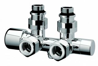 Н-образный термостатический узел с запорными клапанами М24х19 х 1/2" НР, угловой FAR