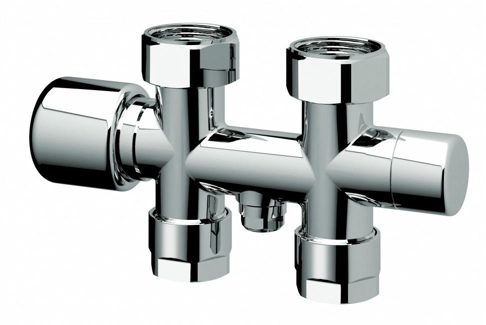 Оцените товар «Н-образный термостатический узел с запорными клапанами М24х19 х 3/4" ВР, прямой FAR»