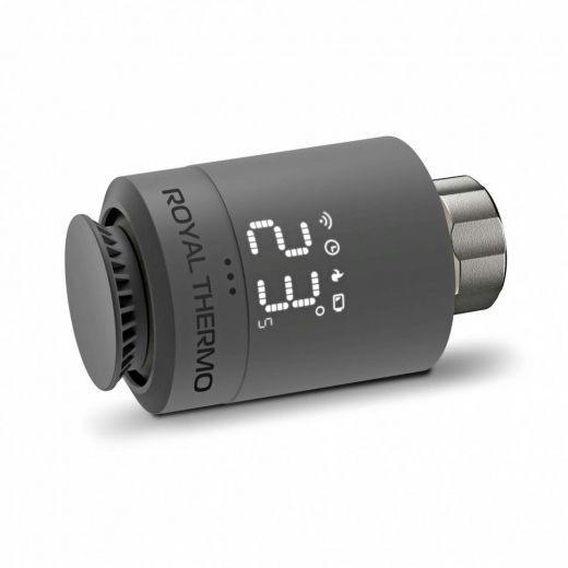 Набор для дистанционного управления отоплением Royal Thermo состоит из термостата и блока управления (хаб) HOMMYN с беспроводным протоколом Zigbee. Термостат радиаторный электронный ROYAL THERMO Smart Heat с LED дисплеем и регулятором температуры.