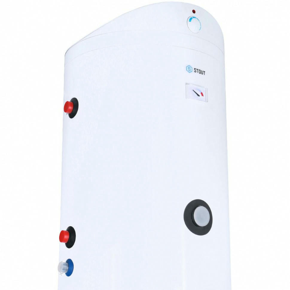 Водонагреватель косвенного нагрева STOUT SWH-1110-000150 предназначен для нагрева и хранения воды в системах ГВС зданий при теплоснабжении от собственного генератора тепловой энергии (котла). В нем холодная водопроводная вода нагревается теплоносителем котла, циркулирующим через встроенный в водонагреватель теплообменник (змеевик). Такой способ нагрева позволяет защитить котел от коррозии и образования накипи, обеспечивая его долговечность. В летний период при бездействии котла вода может нагреваться с помощью дополнительно встраиваемого в водонагреватель ТЭНа.