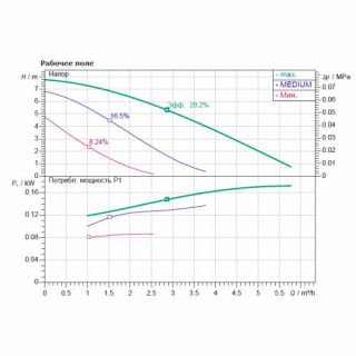 Циркуляционный насос с мокрым ротором для установки в трубах с ручной трехступенчатой регулировкой частоты вращения. С устойчивым к токам блокировки электродвигателем. Корпус насоса из серого чугуна (в зависимости от типа может применяться бронза), рабочее колесо из упрочненного стекловолокном синтетического материала, вал из нержавеющей стали с угольными подшипниками скольжения с металлической пропиткой. Серийное применение в системах холодной воды с температурой до -10 °C. Надежность в эксплуатации благодаря перфорированному валу и фильтрующему устройству перед картриджем.