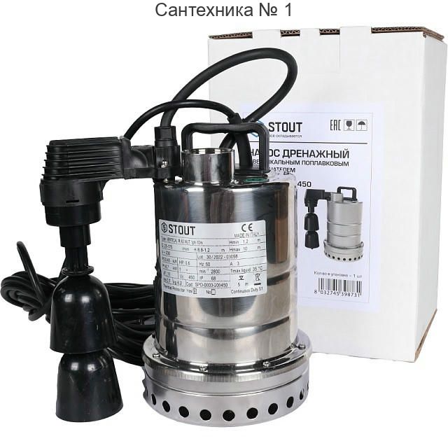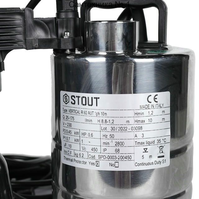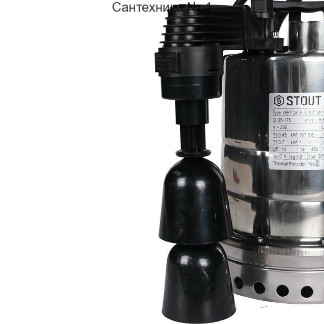 Насос дренажный с вертикальным поплавком 175/8,8, кабель 10 м STOUT