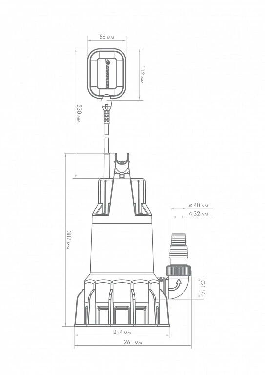 Пропускная способность частиц до 35 мм. Универсальный переходник на три типа шлангов. Оптимальный размер шлангов 32-40 мм. Тугунок 330/12 оснащен поплавковым выключателем, который автоматизирует работу насоса (включает и выключает по уровню). Его необходимо отрегулировать на определенный уровень воды для включения и выключения насоса, закрепляя кабель поплавка в выемку, расположенному на рукоятке.