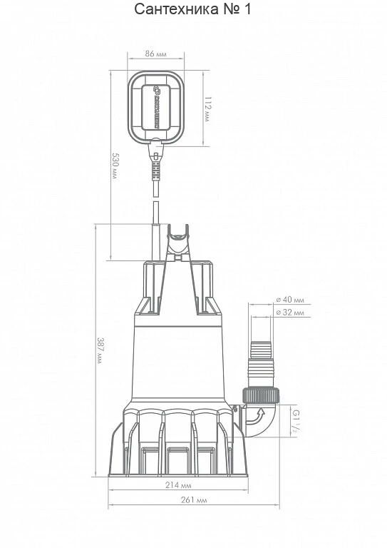 Пропускная способность частиц до 35 мм. Универсальный переходник на три типа шлангов. Оптимальный размер шлангов 32-40 мм. Тугунок 330/12 оснащен поплавковым выключателем, который автоматизирует работу насоса (включает и выключает по уровню). Его необходимо отрегулировать на определенный уровень воды для включения и выключения насоса, закрепляя кабель поплавка в выемку, расположенному на рукоятке.