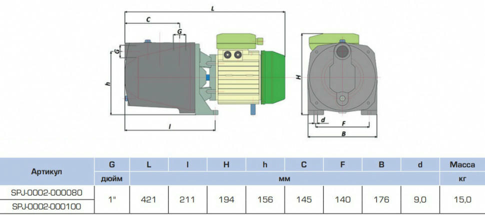 Насос поверхностный 40 л/мин, 42 м, корпус-чугун STOUT