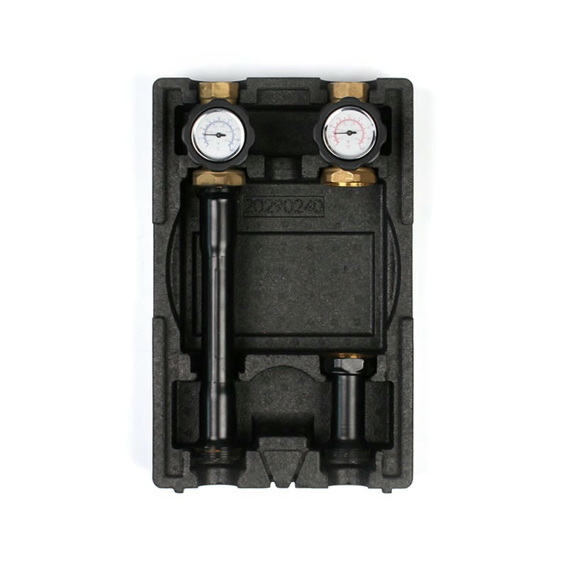 Прямая группа предназначена: для обеспечения циркуляции теплоносителя в контуре радиаторного отопления; для циркуляции в теплообменнике емкостного водонагревателя или пластинчатом теплообменнике; для циркуляции теплоносителя в теплотрассе. Обратный клапан в комплекте. Компактная энергоэффективная изоляция. Доступ к кранам без снятия изоляции.