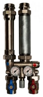 Насосные группы Luxor имеют возможность правостороннего и левостороннего подключения и снабжены термометрами для контроля температуры на коллекторах подачи и возврата, дифференциальным байпасным клапаном для насоса, а так же гнездами для датчиков регулировки и учета.