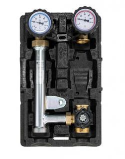 Насосные группы устанавливаются на коллекторы и комбинированные (с гидравлическим разделителем) коллекторы серии KSV для подключения потребителей тепла, таких как системы радиаторного или поверхностного отопления (тёплый пол, системы снеготаяния), а также других видов потребителей с необходимостью регулировать температуру подачи. Все насосные группы укомплектованы запорными шаровыми кранами, обратными клапанами, термометрами на подающей и обратной линиях, крепежом к стене. В комплекте поставки отсутствует сервопривод, который приобретается отдельно. Для установки доступны сервоприводы со временем закрытия 60 и 120 секунд, сервоприводы с автоматическим поддержанием постоянной температуры, а также сепрвоприводы со встроенным погозодависимым управлением. На тыльной стороне теплоизоляции прорезаны специальные пазы для укладки электрических кабелей от насоса и сервопривода. Узел собран в исполнении с подачей справа. При необходимости подающую и обратную линии можно поменять местами. Группа поставляется без насоса. В комплект входят присоединительные гайки для установки насоса типоразмера Ду 25 с присоединительными патрубками G 1 1/2".