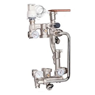 Насосно-смесительный узел TIM JH-1033 представляет собой готовый комплект арматуры (без насоса), предназначенный для создания принудительной циркуляции, регулировки и поддержания заданной температуры в системе водяной теплый пол.