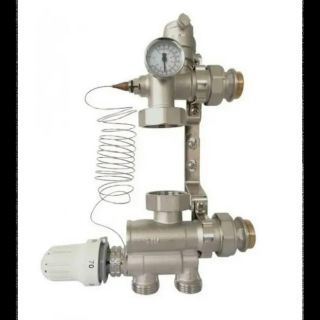 Насосно-смесительный узел TIM JH-1036 предназначен для создания низкотемпературного контура системы отопления (типа "теплый пол"). Монтируется непосредственно на коллекторной группе низкотемпературного контура и подключается к контуру системы отопления.