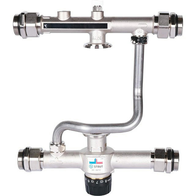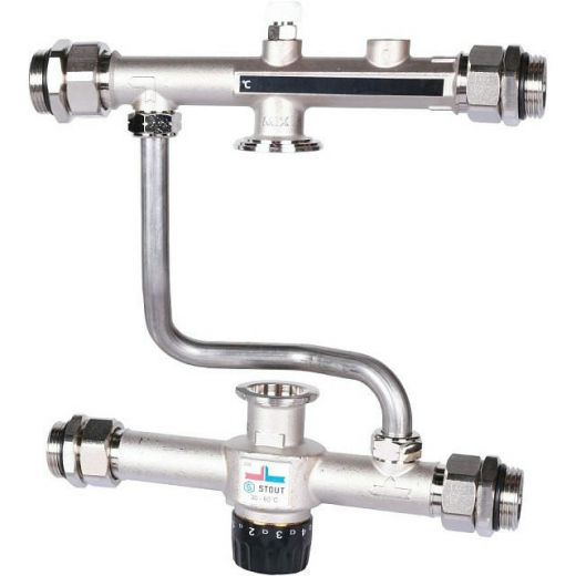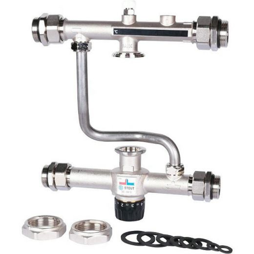 Оцените товар «Насосно-смесительный узел с термостатическим клапаном 30-60°C без насоса STOUT»