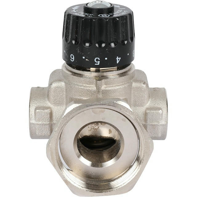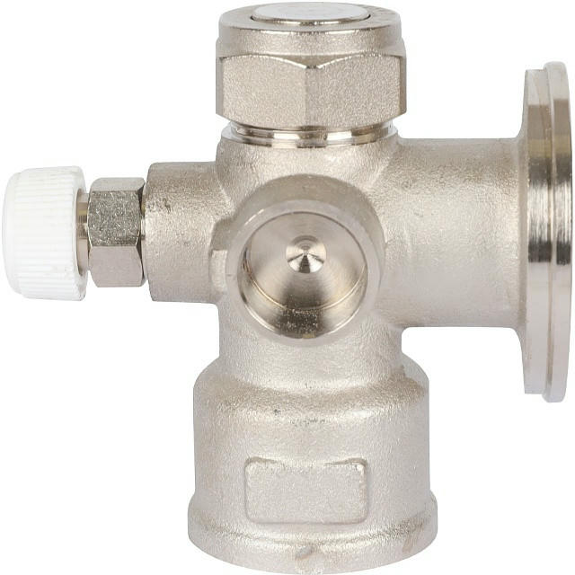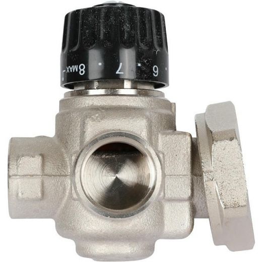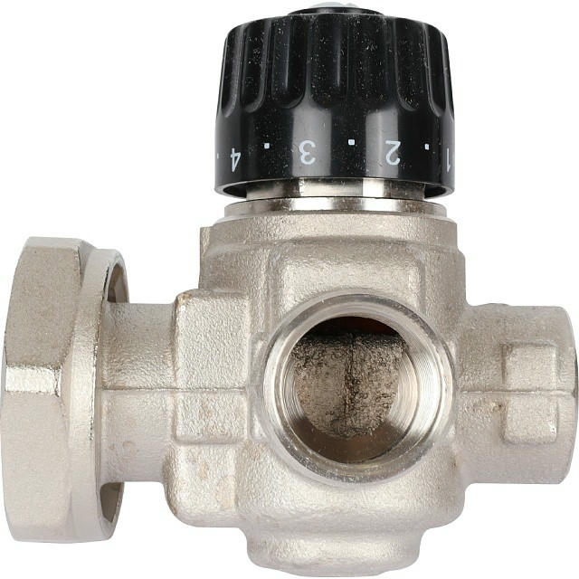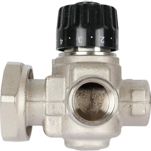 Насосно-смесительный узел STOUT SDG-0120-001000 Италия предназначен для приготовления теплоносителя в системах водяных теплых полов. Регулирование температуры происходит путем подмеса жидкости из обратной линии. Регулирование происходит с помощью двухходового клапана, установленного в подающем коллекторе и управляемым термостатической головкой с выносным погружным датчиком, который размещен на выходе смесительного узла (при использовании контроллера отопления функция управления клапаном передается ему). Балансировочный клапан в линии подмеса задает соотношение теплоносителя, поступающего из обратной линии вторичного контура и прямой линии первичного.