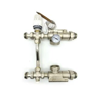 Насосно-смесительный узел TIM JH-1039. Из нержавейки. В комплекте: термоголовка, байпас, термометр, датчик температуры, сторож температуры. Устанавливается насос с установочным расстоянием 130 мм.