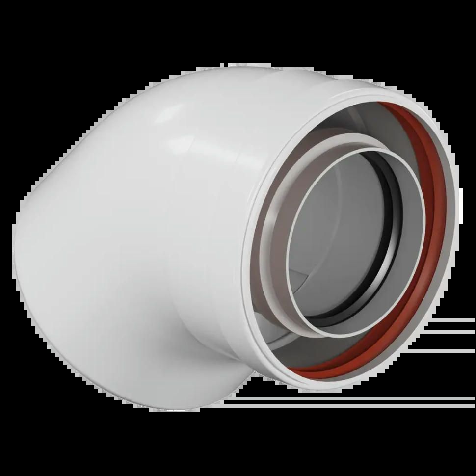 Отвод промежуточный коаксиальный раструбный конденсационный ROMMER 45° 80/125 ? это высококачественный компонент, предназначенный для создания угловых соединений в дымоходных системах конденсационных котлов. Этот элемент обеспечивает эффективное удаление продуктов.
