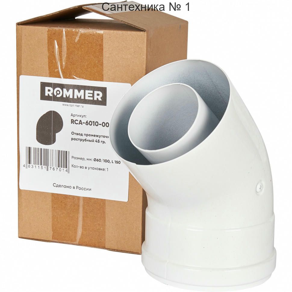 Отвод промежуточный раструбный 45 60/100 (наружный диаметр мама/папа) ROMMER
