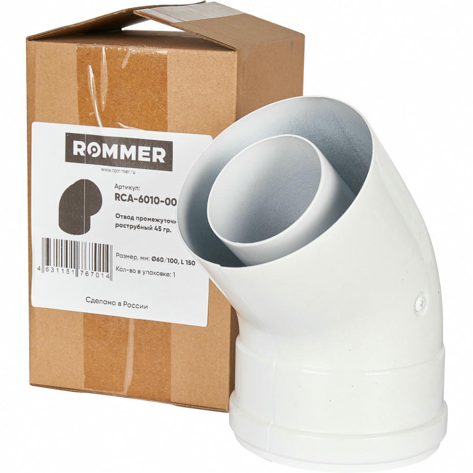 Отвод промежуточный раструбный 45 60/100 (наружный диаметр мама/папа) ROMMER