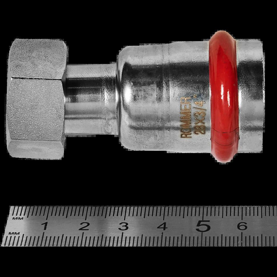 Переходник с накидной гайкой ВР 28х3/4 из нержавеющей стали ROMMER