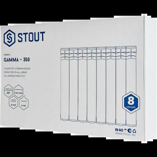 Радиатор алюминиевый GAMMA 350 8 секций, боковое подключение, белый STOUT