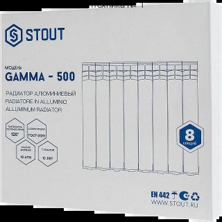 Радиатор алюминиевый GAMMA 500 8 секций, боковое подключение, белый STOUT