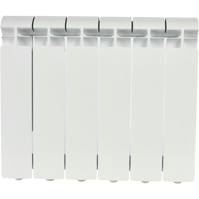 Оцените товар «Радиатор алюминиевый секционный ALPHA 350 6 секций, боковое подключение Ral 9016 STOUT»