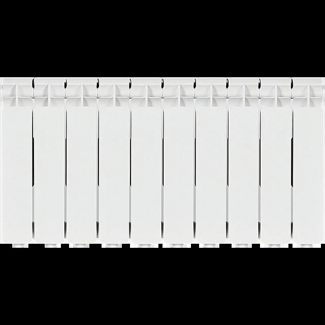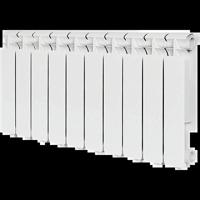 Радиаторы STOUT Bravo собираются из отдельных секций, которые изготавливаются из качественного алюминиевого сплава методом литья под давлением. Каждая секция представляет собой единый монолит из двух коллекторов и связывающего их оребрения, внутри которого проходит вертикальный канала овального сечения. Особая форма оребрения и канала обеспечивают высокие теплотехнические показатели радиатора и низкое гидравлическое сопротивление. В отверстиях коллекторов выполнена трубная резьба размером 1". Резьба служит для соединения секций между собой в радиаторы различной длины с помощью стальных резьбовых ниппелей. Геометрия ниппельных соединений и параметры прокладок гарантируют надежную герметичность собранного радиатора. Наружная поверхность секции радиатора окрашена порошковой эмалью белого цвета.