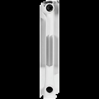 Радиаторы STOUT Bravo собираются из отдельных секций, которые изготавливаются из качественного алюминиевого сплава методом литья под давлением. Каждая секция представляет собой единый монолит из двух коллекторов и связывающего их оребрения, внутри которого проходит вертикальный канала овального сечения. Особая форма оребрения и канала обеспечивают высокие теплотехнические показатели радиатора и низкое гидравлическое сопротивление. В отверстиях коллекторов выполнена трубная резьба размером 1". Резьба служит для соединения секций между собой в радиаторы различной длины с помощью стальных резьбовых ниппелей. Геометрия ниппельных соединений и параметры прокладок гарантируют надежную герметичность собранного радиатора. Наружная поверхность секции радиатора окрашена порошковой эмалью белого цвета.