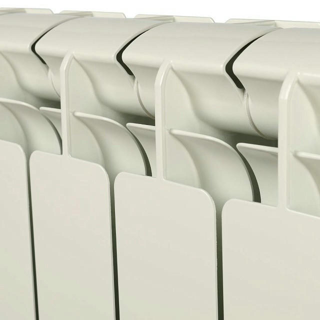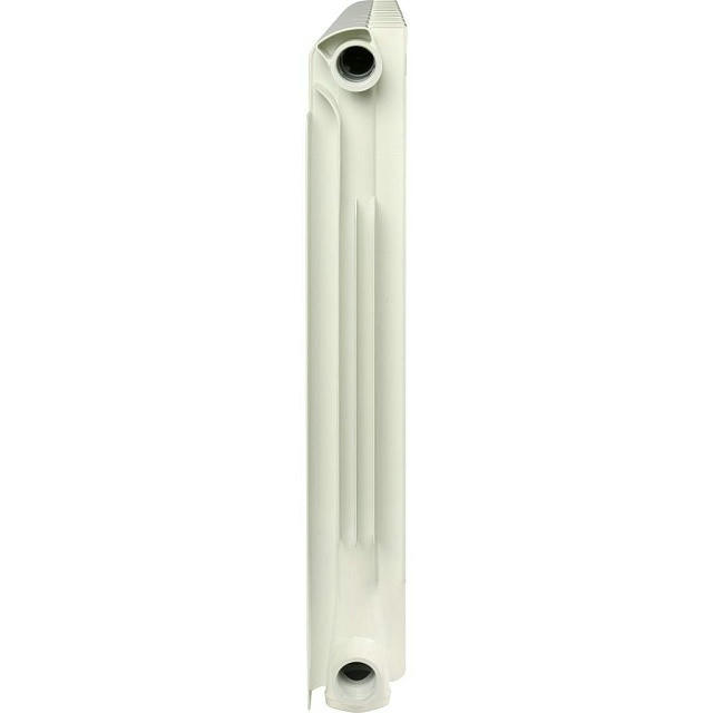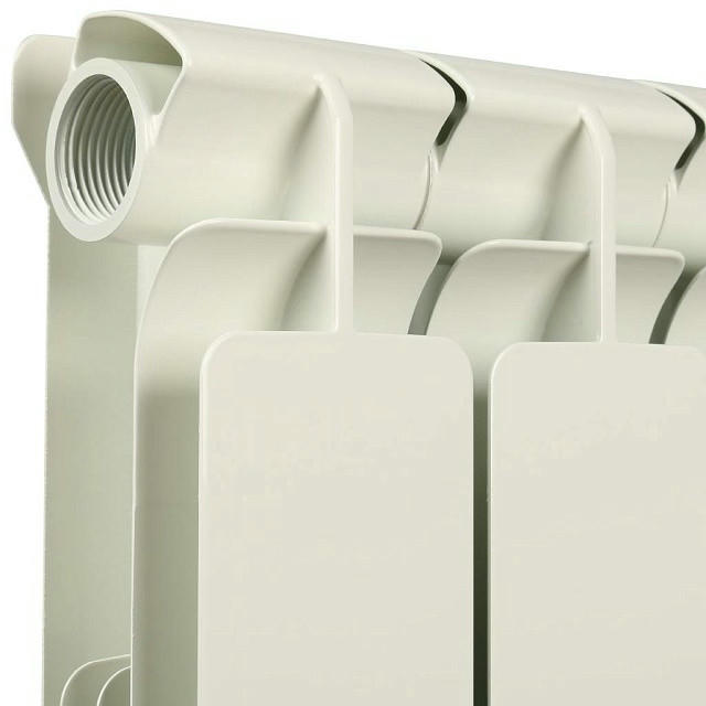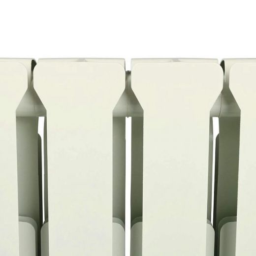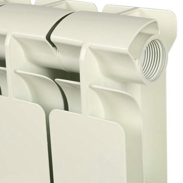 Радиаторы STOUT Bravo собираются из отдельных секций, которые изготавливаются из качественного алюминиевого сплава методом литья под давлением. Каждая секция представляет собой единый монолит из двух коллекторов и связывающего их оребрения, внутри которого проходит вертикальный канала овального сечения. Особая форма оребрения и канала обеспечивают высокие теплотехнические показатели радиатора и низкое гидравлическое сопротивление. В отверстиях коллекторов выполнена трубная резьба размером 1". Резьба служит для соединения секций между собой в радиаторы различной длины с помощью стальных резьбовых ниппелей. Геометрия ниппельных соединений и параметры прокладок гарантируют надежную герметичность собранного радиатора. Наружная поверхность секции радиатора окрашена порошковой эмалью белого цвета.