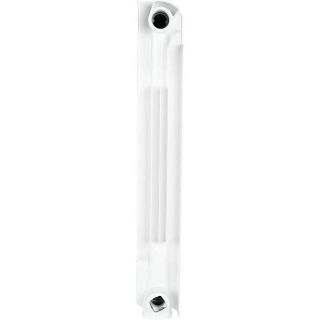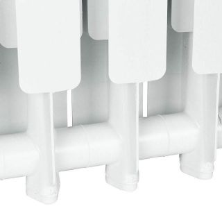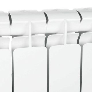 Радиаторы STOUT Bravo собираются из отдельных секций, которые изготавливаются из качественного алюминиевого сплава методом литья под давлением. Каждая секция представляет собой единый монолит из двух коллекторов и связывающего их оребрения, внутри которого проходит вертикальный канала овального сечения. Особая форма оребрения и канала обеспечивают высокие теплотехнические показатели радиатора и низкое гидравлическое сопротивление. В отверстиях коллекторов выполнена трубная резьба размером 1". Резьба служит для соединения секций между собой в радиаторы различной длины с помощью стальных резьбовых ниппелей. Геометрия ниппельных соединений и параметры прокладок гарантируют надежную герметичность собранного радиатора. Наружная поверхность секции радиатора окрашена порошковой эмалью белого цвета.