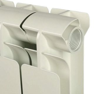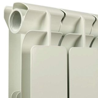 Радиаторы STOUT Bravo собираются из отдельных секций, которые изготавливаются из качественного алюминиевого сплава методом литья под давлением. Каждая секция представляет собой единый монолит из двух коллекторов и связывающего их оребрения, внутри которого проходит вертикальный канала овального сечения. Особая форма оребрения и канала обеспечивают высокие теплотехнические показатели радиатора и низкое гидравлическое сопротивление. В отверстиях коллекторов выполнена трубная резьба размером 1". Резьба служит для соединения секций между собой в радиаторы различной длины с помощью стальных резьбовых ниппелей. Геометрия ниппельных соединений и параметры прокладок гарантируют надежную герметичность собранного радиатора. Наружная поверхность секции радиатора окрашена порошковой эмалью белого цвета.