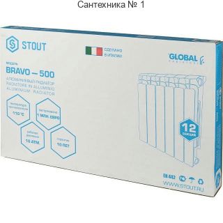 Радиатор алюминиевый секционный BRAVO 500 12 секций, боковое подключение, белый STOUT