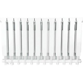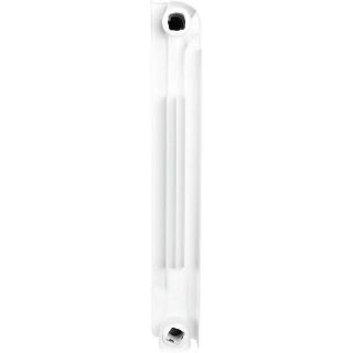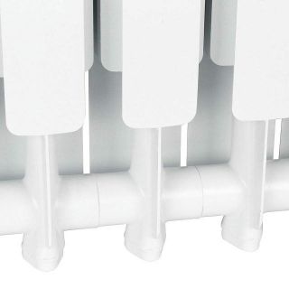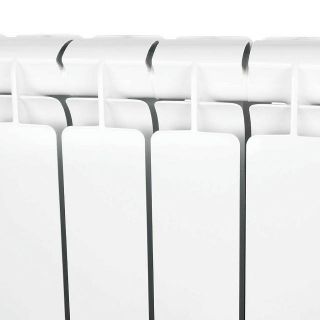 Радиаторы STOUT Bravo собираются из отдельных секций, которые изготавливаются из качественного алюминиевого сплава методом литья под давлением. Каждая секция представляет собой единый монолит из двух коллекторов и связывающего их оребрения, внутри которого проходит вертикальный канала овального сечения. Особая форма оребрения и канала обеспечивают высокие теплотехнические показатели радиатора и низкое гидравлическое сопротивление. В отверстиях коллекторов выполнена трубная резьба размером 1". Резьба служит для соединения секций между собой в радиаторы различной длины с помощью стальных резьбовых ниппелей. Геометрия ниппельных соединений и параметры прокладок гарантируют надежную герметичность собранного радиатора. Наружная поверхность секции радиатора окрашена порошковой эмалью белого цвета.