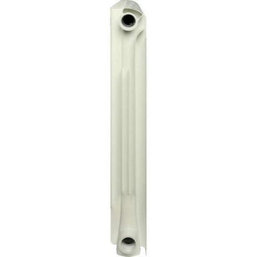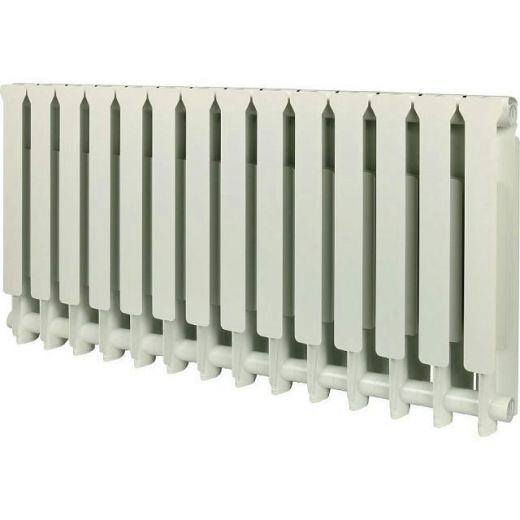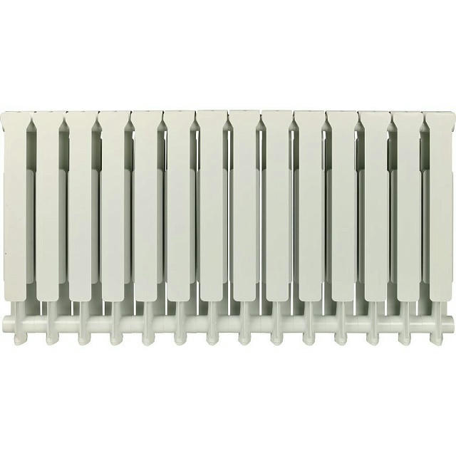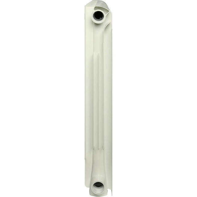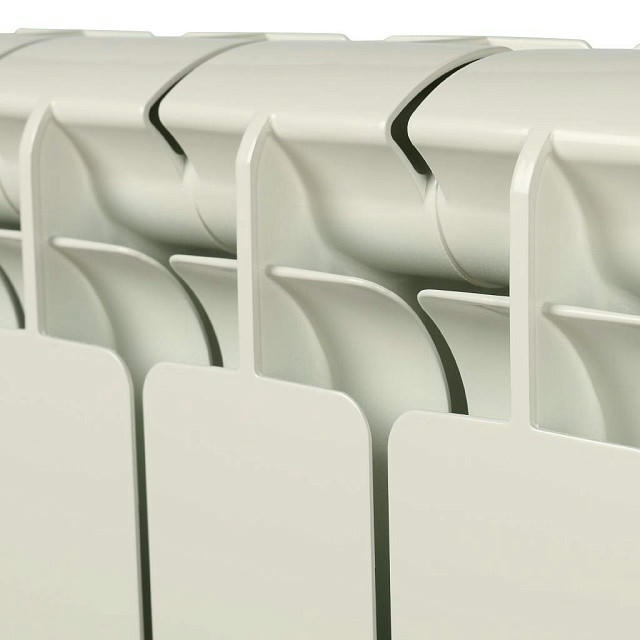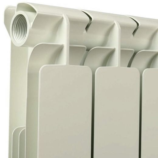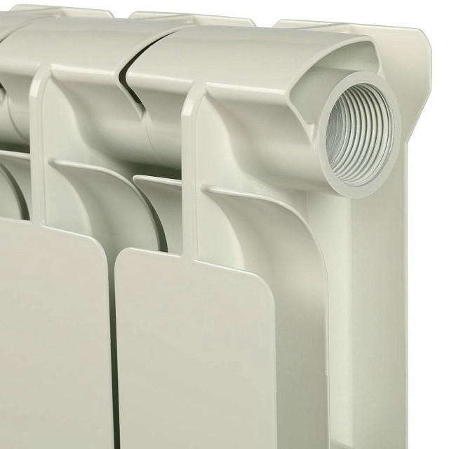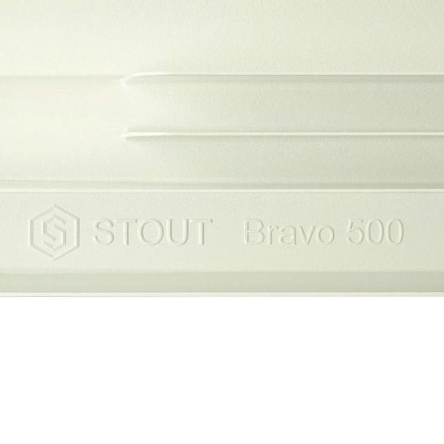Радиаторы STOUT Bravo собираются из отдельных секций, которые изготавливаются из качественного алюминиевого сплава методом литья под давлением. Каждая секция представляет собой единый монолит из двух коллекторов и связывающего их оребрения, внутри которого проходит вертикальный канала овального сечения. Особая форма оребрения и канала обеспечивают высокие теплотехнические показатели радиатора и низкое гидравлическое сопротивление. В отверстиях коллекторов выполнена трубная резьба размером 1". Резьба служит для соединения секций между собой в радиаторы различной длины с помощью стальных резьбовых ниппелей. Геометрия ниппельных соединений и параметры прокладок гарантируют надежную герметичность собранного радиатора. Наружная поверхность секции радиатора окрашена порошковой эмалью белого цвета.