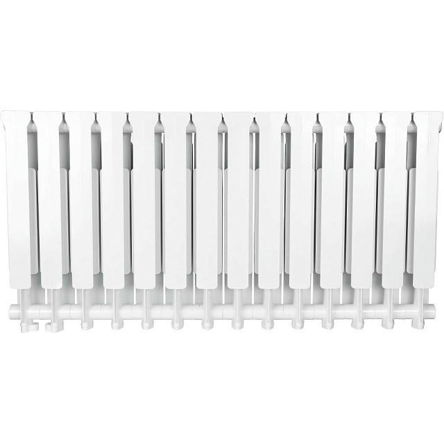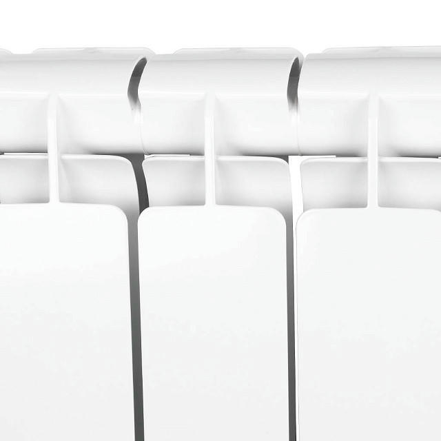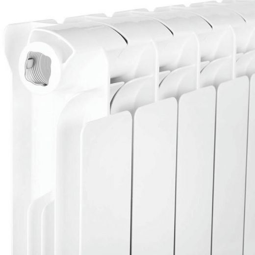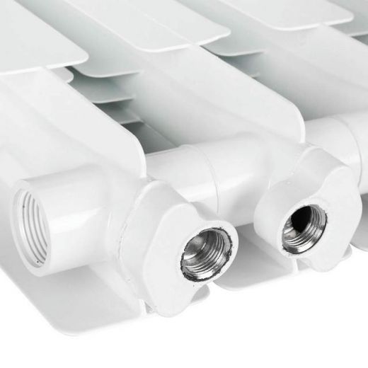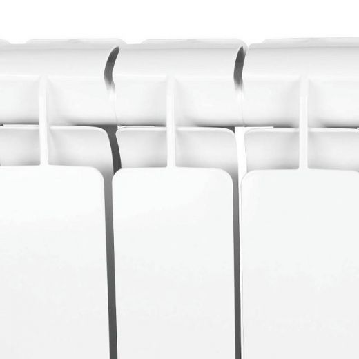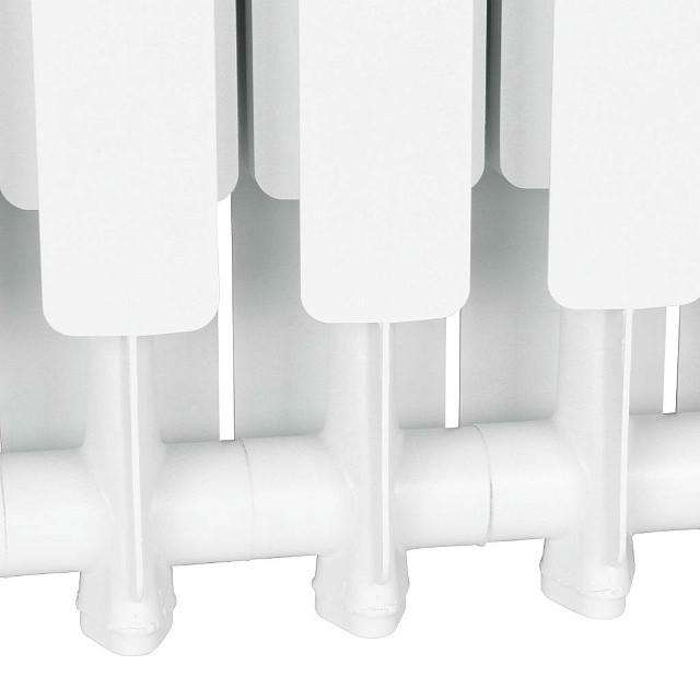 Радиаторы STOUT Bravo собираются из отдельных секций, которые изготавливаются из качественного алюминиевого сплава методом литья под давлением. Каждая секция представляет собой единый монолит из двух коллекторов и связывающего их оребрения, внутри которого проходит вертикальный канала овального сечения. Особая форма оребрения и канала обеспечивают высокие теплотехнические показатели радиатора и низкое гидравлическое сопротивление. В отверстиях коллекторов выполнена трубная резьба размером 1". Резьба служит для соединения секций между собой в радиаторы различной длины с помощью стальных резьбовых ниппелей. Геометрия ниппельных соединений и параметры прокладок гарантируют надежную герметичность собранного радиатора. Наружная поверхность секции радиатора окрашена порошковой эмалью белого цвета.