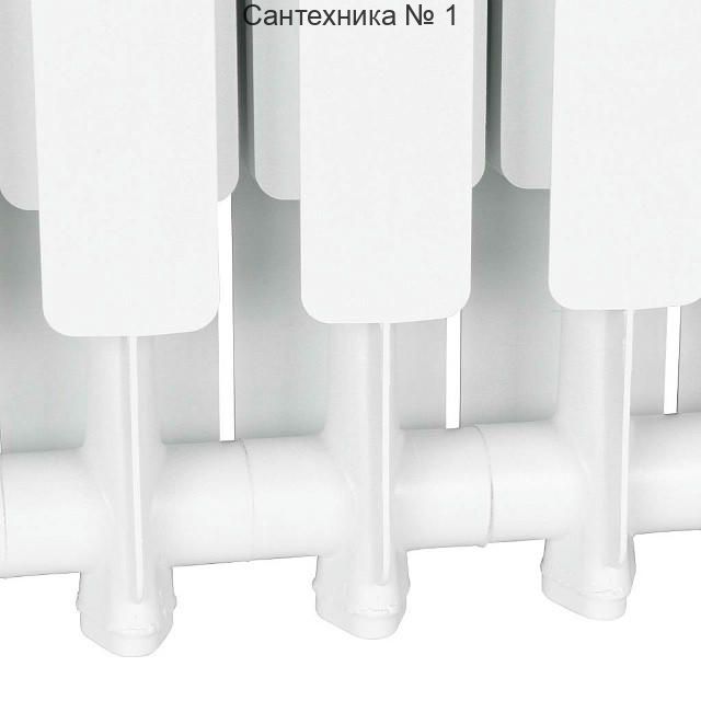 Радиаторы STOUT Bravo собираются из отдельных секций, которые изготавливаются из качественного алюминиевого сплава методом литья под давлением. Каждая секция представляет собой единый монолит из двух коллекторов и связывающего их оребрения, внутри которого проходит вертикальный канала овального сечения. Особая форма оребрения и канала обеспечивают высокие теплотехнические показатели радиатора и низкое гидравлическое сопротивление. В отверстиях коллекторов выполнена трубная резьба размером 1". Резьба служит для соединения секций между собой в радиаторы различной длины с помощью стальных резьбовых ниппелей. Геометрия ниппельных соединений и параметры прокладок гарантируют надежную герметичность собранного радиатора. Наружная поверхность секции радиатора окрашена порошковой эмалью белого цвета.