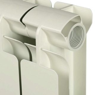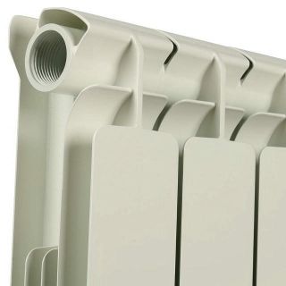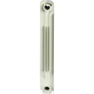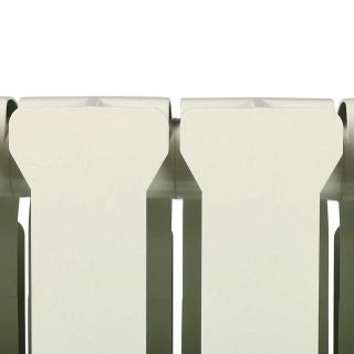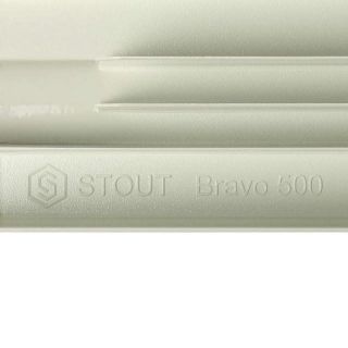 Радиаторы STOUT Bravo собираются из отдельных секций, которые изготавливаются из качественного алюминиевого сплава методом литья под давлением. Каждая секция представляет собой единый монолит из двух коллекторов и связывающего их оребрения, внутри которого проходит вертикальный канала овального сечения. Особая форма оребрения и канала обеспечивают высокие теплотехнические показатели радиатора и низкое гидравлическое сопротивление. В отверстиях коллекторов выполнена трубная резьба размером 1". Резьба служит для соединения секций между собой в радиаторы различной длины с помощью стальных резьбовых ниппелей. Геометрия ниппельных соединений и параметры прокладок гарантируют надежную герметичность собранного радиатора. Наружная поверхность секции радиатора окрашена порошковой эмалью белого цвета.
