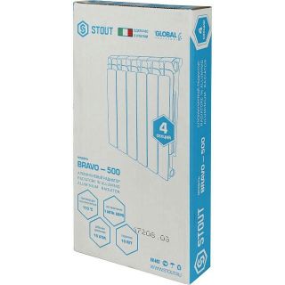 Радиатор алюминиевый секционный BRAVO 500 4 секции, боковое подключение, белый STOUT