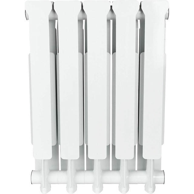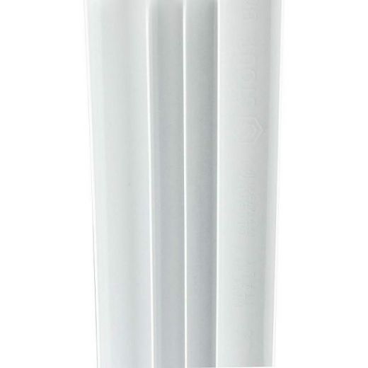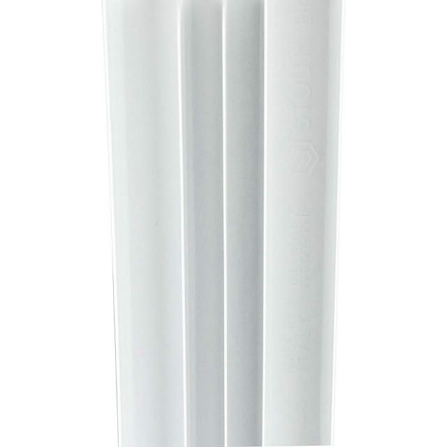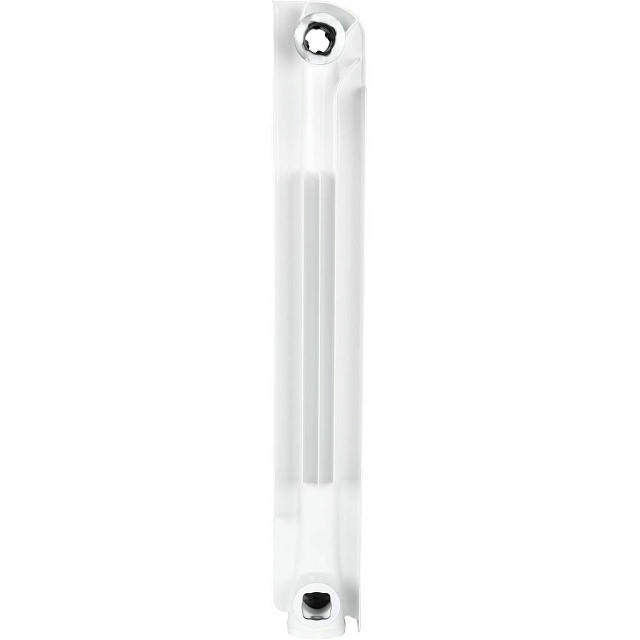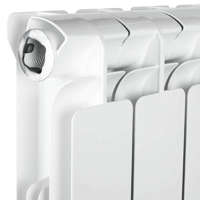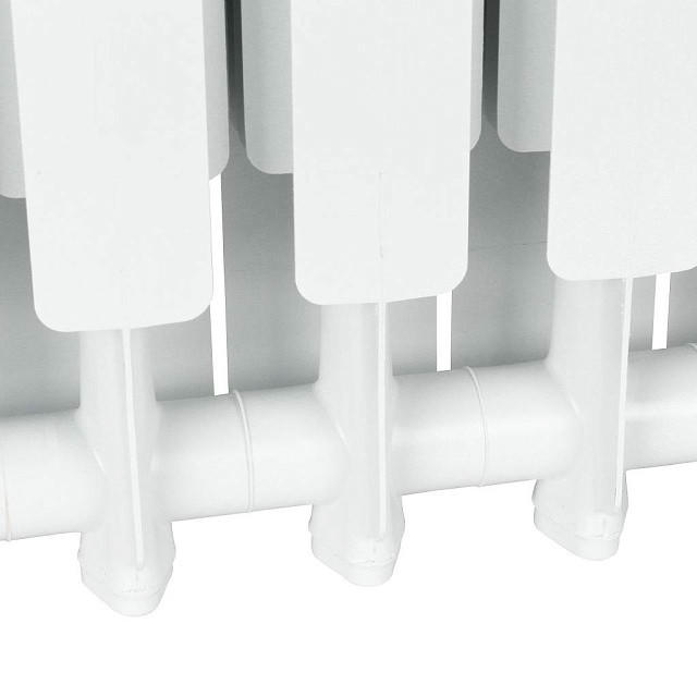 Радиаторы STOUT Bravo собираются из отдельных секций, которые изготавливаются из качественного алюминиевого сплава методом литья под давлением. Каждая секция представляет собой единый монолит из двух коллекторов и связывающего их оребрения, внутри которого проходит вертикальный канала овального сечения. Особая форма оребрения и канала обеспечивают высокие теплотехнические показатели радиатора и низкое гидравлическое сопротивление. В отверстиях коллекторов выполнена трубная резьба размером 1". Резьба служит для соединения секций между собой в радиаторы различной длины с помощью стальных резьбовых ниппелей. Геометрия ниппельных соединений и параметры прокладок гарантируют надежную герметичность собранного радиатора. Наружная поверхность секции радиатора окрашена порошковой эмалью белого цвета.